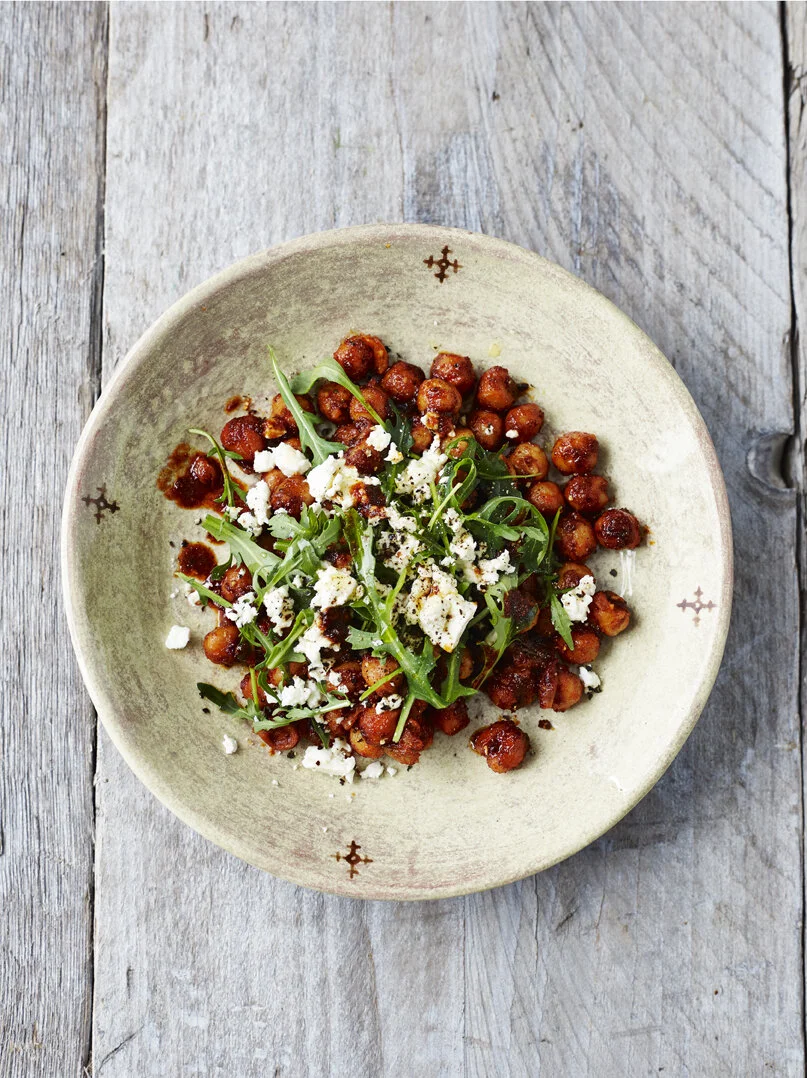 Chickpeas are such a versatile store cupboard ingredient, great for bulking out meals, but also they can be used as the main ingredient. Here I have oven baked them in olive oil and spices to create a crispy coating that gives this salad an amazing texture.